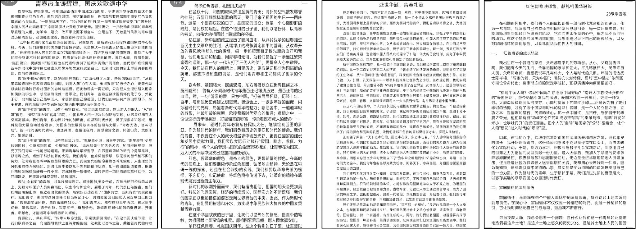 以文聚力,书写盛世辉煌。在缤纷的10月,一场“我与祖国共成长”为主题的征文比赛拉开帷幕。同学们以笔为媒,结合自己的学习生活,用华丽的文字、真挚的情感和丰富笔触,书写下自己与祖国共成长的动人故事。每一篇征文都是同学们用心编织的祝福,深切表达着对祖国母亲的热爱。他们用自己的方式,向祖国献上最真挚的敬意。