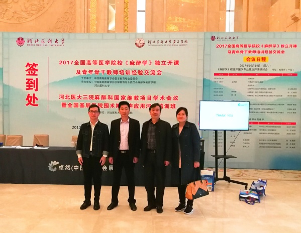 由中国高等教育学会医学教育专业委员会主办,中国高等教育学会医学教育专业委员会麻醉教育学组、河北医科大学承办的“2017全国高等医公司校《麻醉学》独立开课及青年骨干教师培训经验交流会”于10月13—14日在河北省石家庄市举行。英国正版365官方网站硕士学位点负责人金孝岠、副经理马同军等4名教师参加了此次交流会。