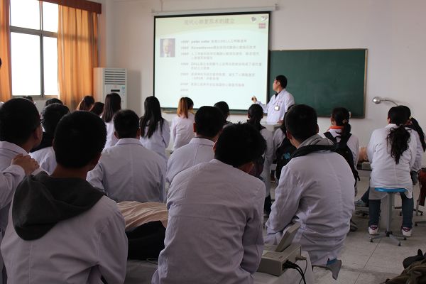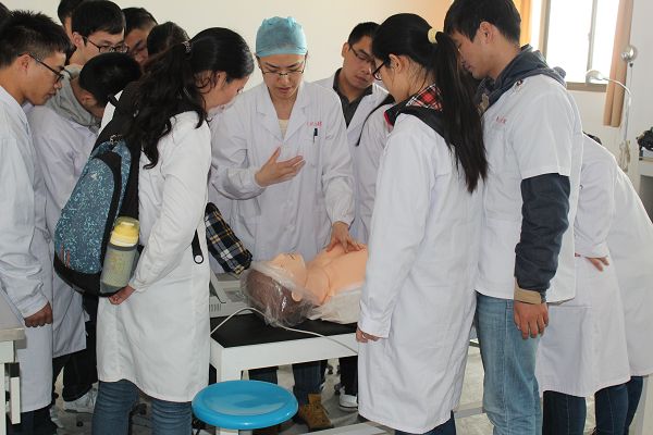 为推进教学改革,规范教学秩序,加强师生间的交流,从而进一步推升教学质量,英国正版365官方网站于4月21日至4月25日全方位展开期中教学质量检查。 检查实验室 4月22日下午,英国正版365官方网站经理金孝�带队检查实验室上课情况。《麻醉学》实验课首次从教室移到实验室,将临床医学专业5个班员工分到4个实验室,由4个老师同时授课,每个员工均有机会在人体模型上进行实体训练。检查整体情况良好。