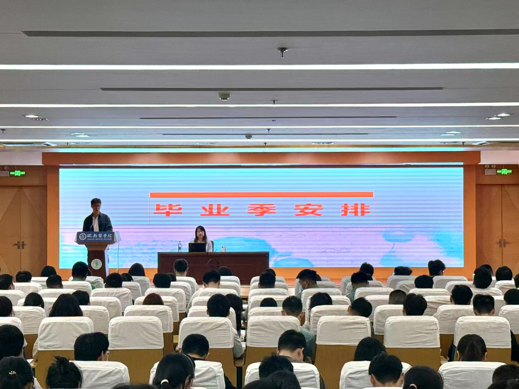会议伊始,一段记录五年校园生活的影像视频拉开序幕。从初入校园的青涩懵懂到临床实习的沉稳干练,一张张照片展现了同学们在专业学习、实践与生活中的成长足迹。优秀毕业生代表王晶饱含深情地发言,令同学们感触很深。