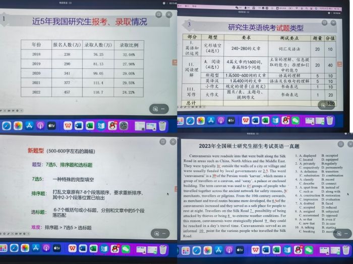 王翠莲老师首先分析了当前的考研形势,随后讲解了英语考研全流程和高分备考方案,对考研英语一、英语二的题型设置进行了细致的分析,对英语科目各题型得分点及目标要求进行了重点强调。讲解中,王翠莲老师以往年真题为例,就新题型和完形填空题型进行细致讲解,以自己的丰富经验为同学们指点迷津、厘清疑惑,为同学们明确了解题思路,让考生对考研英语试题类型有了更加清晰深刻的认识。