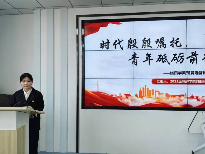 从年级评选中脱颖而出的3个班级和5位选手,结合班级特色,以“砥砺深耕行致远 笃行不怠领芳华”“时代殷殷嘱托 青年砥砺前行”为主题,汇报了班级在组织构建、思想建设、学风建设、学业成果、文化活动和班级荣誉等情况,展现了同学热爱公司、热爱班级、勤奋努力、刻苦学习、开拓创新的良好学习风气。5位年级“优秀学子”以“理论联系实际,实践铸就未来”“赶路知躬行 望山而远行”等为主题,通过ppt分别展示了自身在“实践典型”“党员典型”、“学习典型”和“励志典型”等方面作出的努力和取得的成果,起到了良好的示范和引领作用。