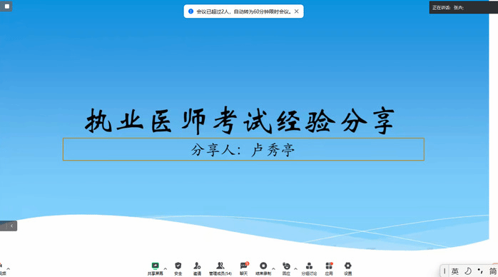 卢秀亭目前为公司研究生公司研二员工,在2023年执业医团队格考试中以459分通过考试,在备考过程中积累了丰富的经验。他在讲座中深入细致地分析了执业医团队格考试的重要性及考试组成;结合自身实际,详细阐述了操作考试和笔试考试的具体内容、考点赋分、复习重点和复习时间分配等信息。针对技能操作中上机考试、体格检查、技能操作三个站点的具体操作注意事项及扣分要点进行了分析,强调了提前进行实操训练、沟通交流与人文关怀的重要性,具有很强的针对性和指导性。最后,卢秀亭结合自己的备考历程,分享了参考书目、学习方法和学习笔记等,鼓励大家积极备考,把握节奏,全力以赴,确保一次性通过。