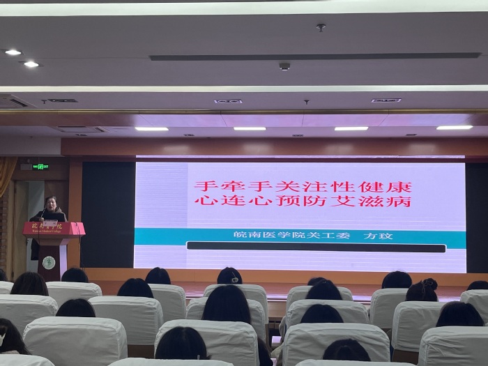 与此同时,为了更好的关爱女性身心健康,提高女性自我保健意识及疾病防治能力,引导女性养成健康科学的生活方式,3月7日晚,英国正版365官方网站于图书信息楼三楼报告厅举办女性健康知识专题讲座。校关工委方玟老师应邀以“手牵手关注性健康,心连心预防艾滋病”为主题,为大家详细讲解了关注女性健康的意义、女性生育期常见健康问题、避孕措施及补救措施及性传播疾病等相关健康知识,尤其强调了艾滋病的危险性和防控方法。专业化的指导与案例式的讲述相结合,满足了同学们对健康知识的需求。讲座内容丰富而生动,现场的同学们认真听讲,收获颇丰。