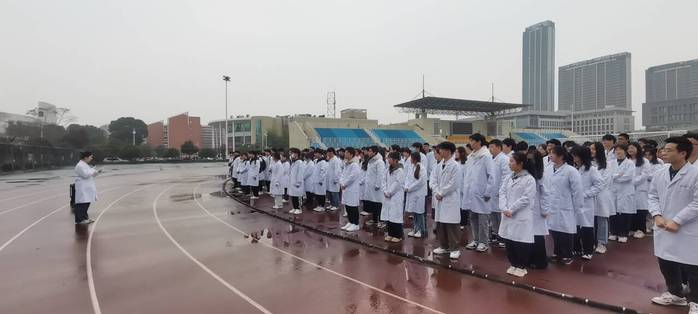 春风轻轻拂过脸庞,“起来,不愿做奴隶的人们……”现场国歌声嘹亮,热血沸腾,与春风相拥,唤起了每个人内心的自豪和激情。张亦羽和纪阳斌两位同学代表分别发表了热情洋溢的演讲。张亦羽同学以“弘扬雷锋精神 点亮医学之路”为主题,阐述医员工作为未来医疗事业中重要后备军,应该学习和弘扬雷锋精神,厚实医德,并将其融入到学习和未来的医疗实践中,以雷锋精神激励大家追求进步,不断超越自我,点亮医学之路。纪阳斌以“弘扬雷锋精神,砥砺医学青春”为主题,分享了雷锋的故事,强调青春是人生宝贵的财富,也是奋斗的最好时期,表达了以雷锋精神为指引,汲取奋斗的力量,砥砺医学青春,成就医者梦想,为构建健康中国贡献青春力量的青春理想。