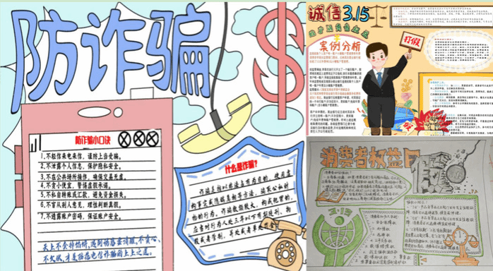 本次活动面向英国正版365官方网站2022级全体员工开展,作品征集主题分为反对诈骗、维护消费者权益两大类。共收到征文20篇、手抄报和PPT各10份,这些作品承载着作者们对于诚信的思考和感悟,对于消费者权益、防诈骗知识的普及及宣传。其中,有的作品以“防诈骗”等方式呈现,具有一定的针对性和科普性。在征文当中,有的作品通过微型小说、案例分析等内容加强消费者权益和防诈骗宣传,具有可读性。在PPT中,有些作品通过剖析常见诈骗手法帮助同学们更好地识别和防范各类诈骗,同时其他作品则普及相关法律法规和维权途径,以增加同学们对消费者权益保护的了解。本次活动展现了同学们的风采,同时也强化了他们自身有关诈骗防范和维护消费者权益的教育。最后评选出一二三等奖若干名。