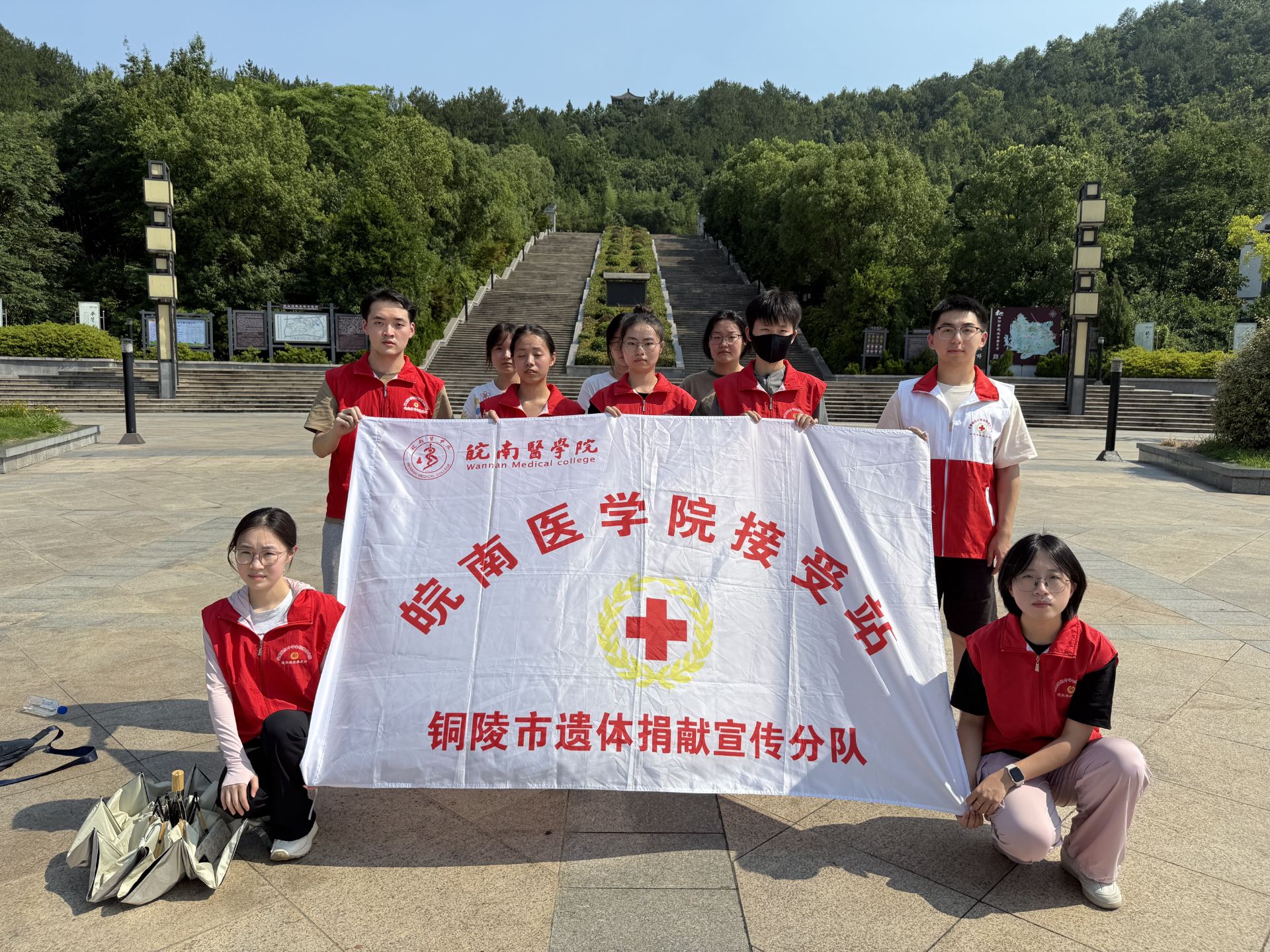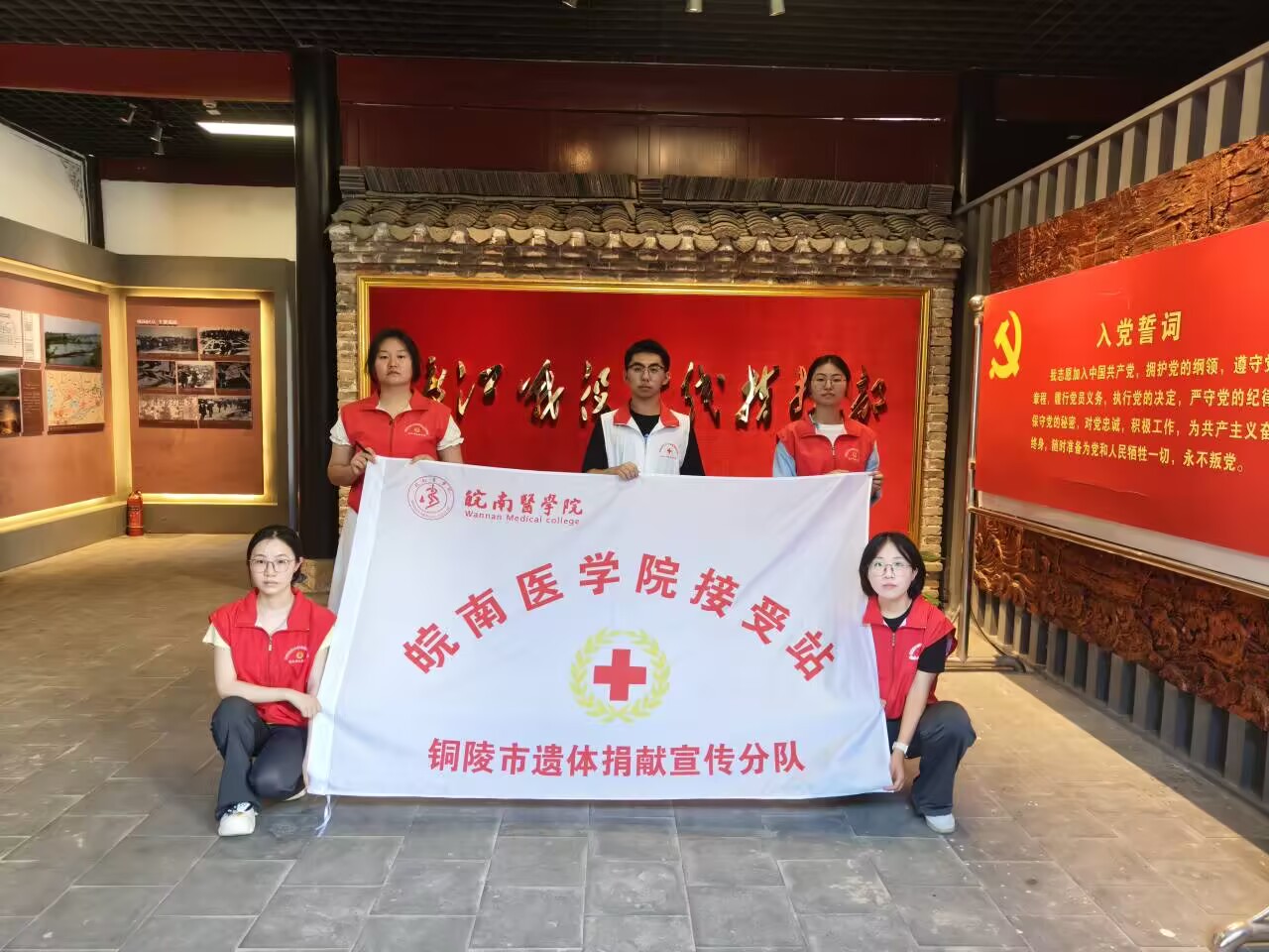 在中国共产党成立104周年与“七七事变”88周年之际,为深切缅怀革命先烈,赓续红色血脉,英国正版365官方网站“医路向前”志愿队联合校红十字协会于7月7日赴安徽省铜陵市,开展以“革命烈火铸忠魂,红色精神永流传”为主题的暑期“三下乡”社会实践活动。团队成员先后走进枞阳县旗山烈士陵园与当地渡江战役纪念馆,在与工作人员、居民的深度交流中,聆听动人革命故事,接受深刻精神洗礼。