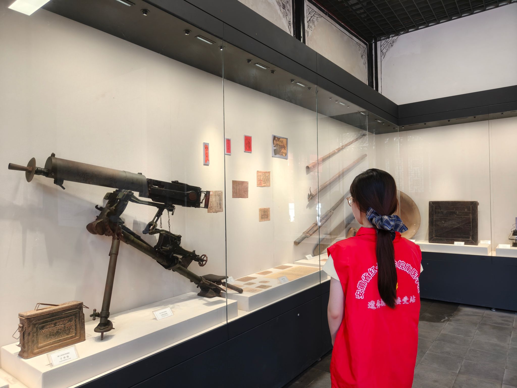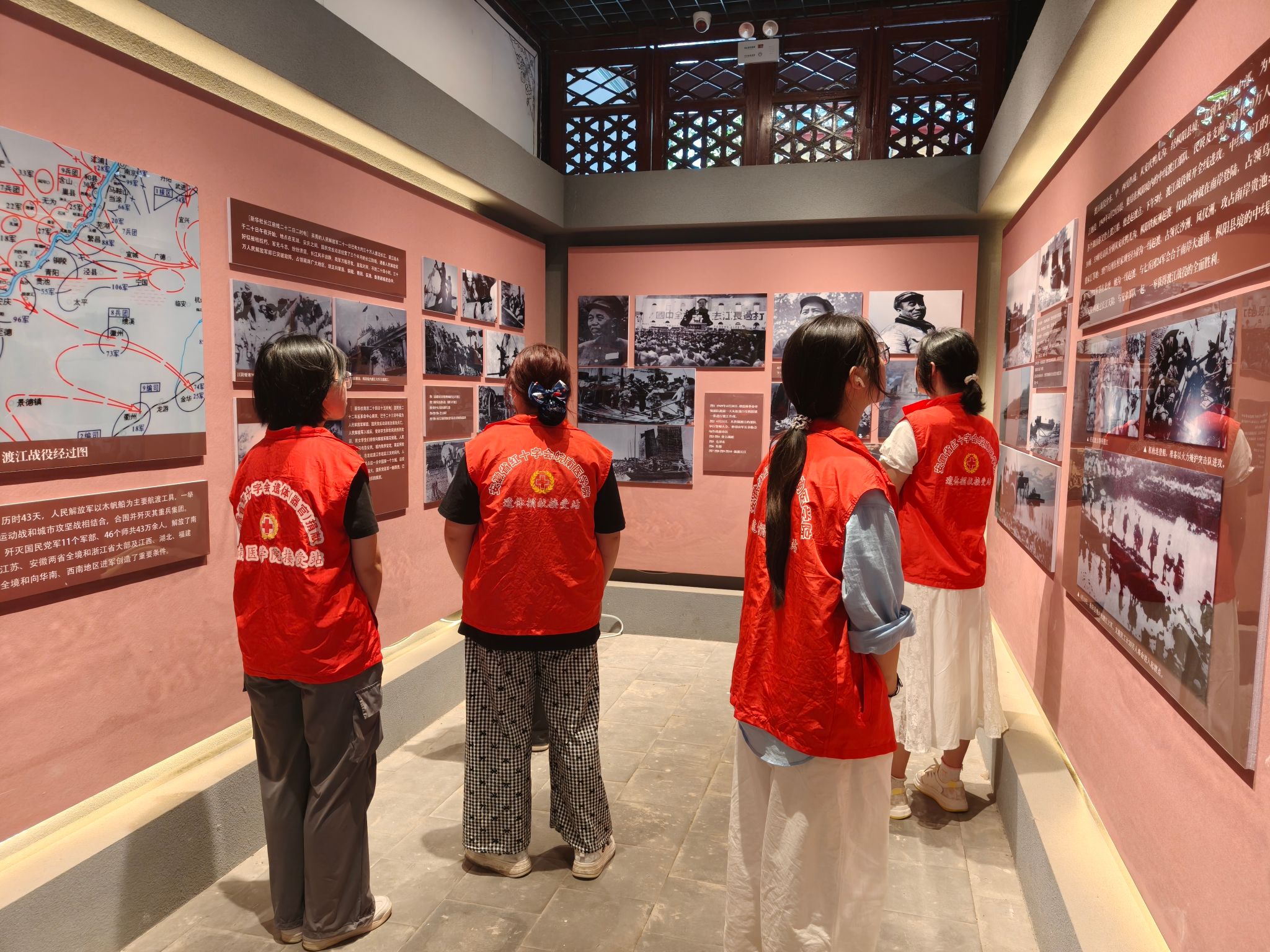 血火淬江魂,旌旗耀新程。当日下午1时,团队前往枞阳县渡江战役纪念馆。在工作人员细致引导与生动讲解下,队员们有序参观各个展室,通过泛黄的史料、珍贵的实物,深入了解渡江战役的决策部署、战略战术与战斗历程,深刻感悟新中国成立前夕的峥嵘岁月,以及革命先辈不屈不挠的斗争精神与“人民战争”的磅礴伟力。