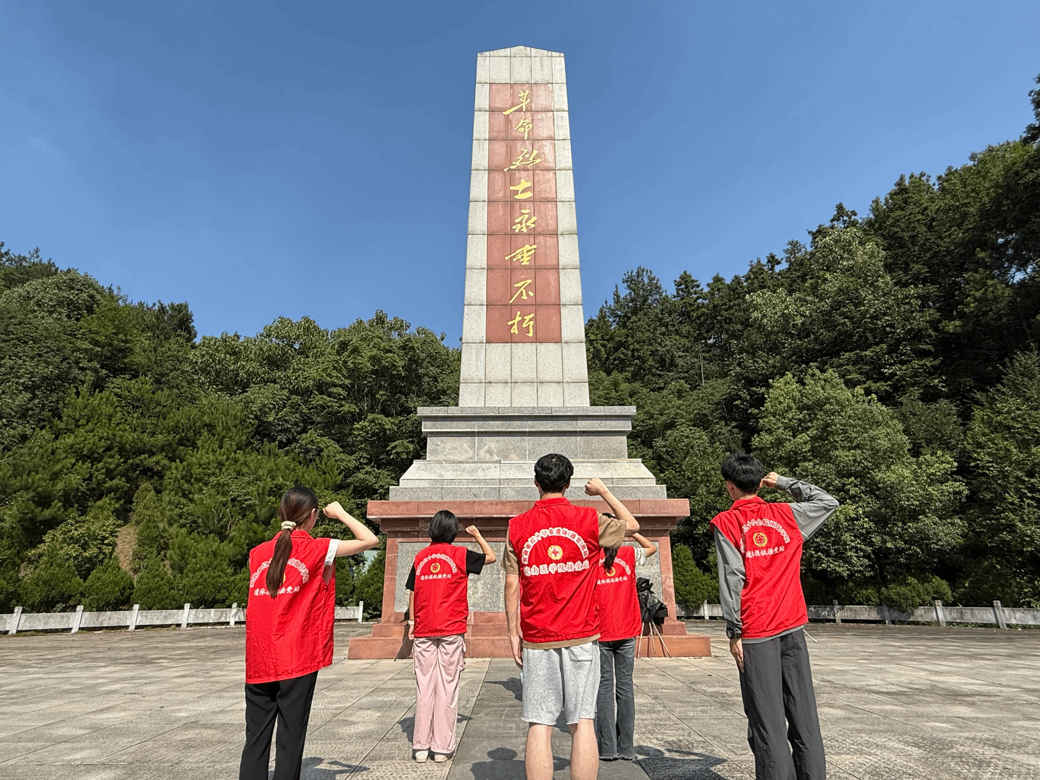 丰碑励壮志,星火照来人。7月7日上午9时,团队怀着崇敬之心步入旗山烈士陵园,在庄严肃穆的红色地标中开启涤荡心灵的革命精神之旅。在镌刻着“革命烈士永垂不朽”的纪念碑前,队员们整齐列队、肃立默哀三分钟,随后俯身擦拭碑座浮尘、清扫石阶落叶。指尖触及冰凉石材的瞬间,历史的厚重与温度穿透时空,仿佛完成了一场与革命先辈跨越百年的青春对话。