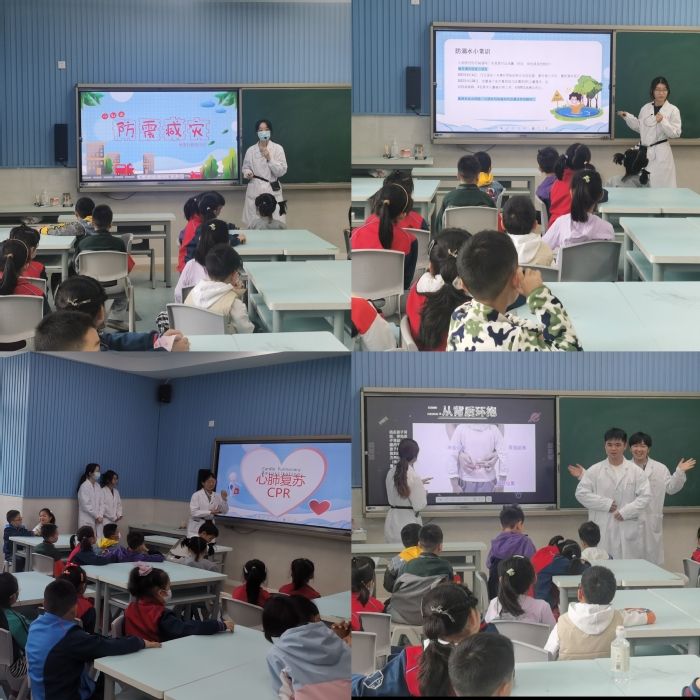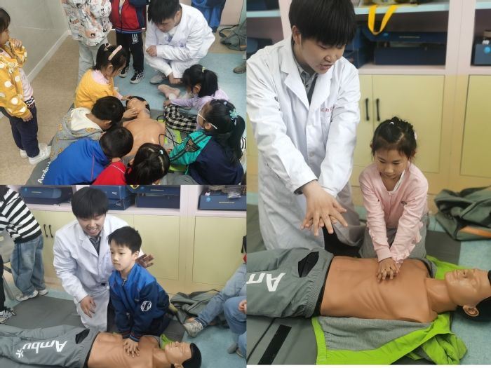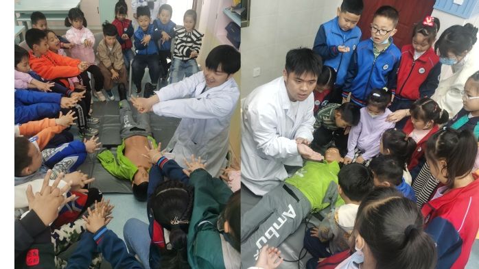 员工志愿者以丰富生动的事例向小员工讲解了地震防灾减灾、防溺水、心肺复苏和海姆立克操作等四个方面的安全教育知识和急救措施。通过生动有趣的演示方式带领小朋友现场演示了地震逃生,心肺复苏和海姆立克具体步骤和手法等内容。同学们准备充分,操作详细,现场互动热烈,吸引了小朋友们积极参加和争相模仿,取得了良好的效果。