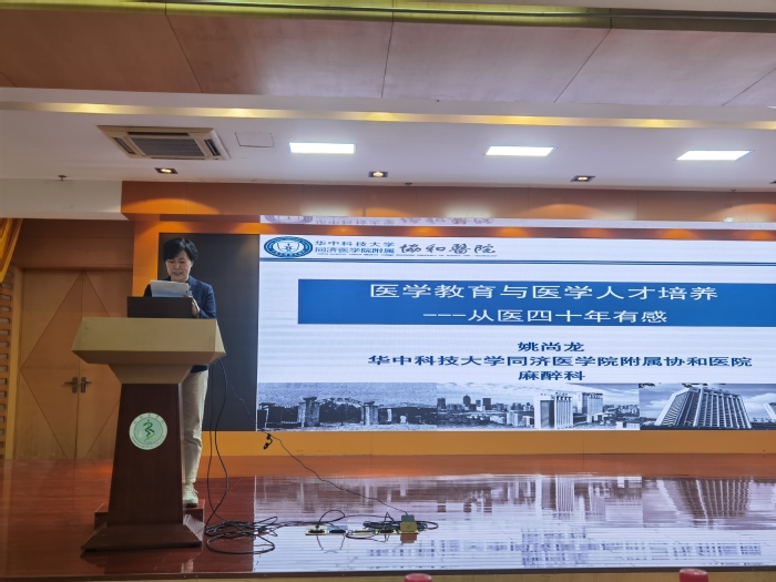 2023年4月26日下午,公司杰出员工姚尚龙教授应邀在图书信息楼三楼报告厅作题为“医学教育与医学人才培养——从医四十年有感”主题报告。公司党委副书记贾贤燕主持报告会。公司党政负责同志,麻醉学、临床医学及护理学专业的师生现场聆听了报告。