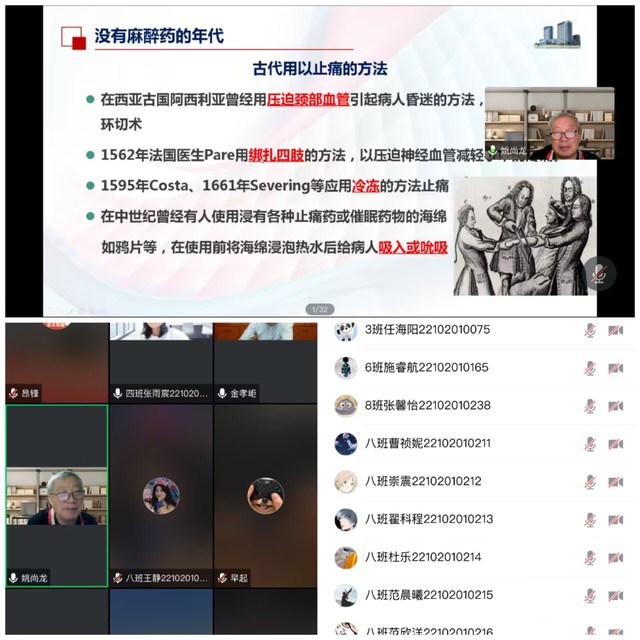 金秋九月,丹桂飘香。为了更好的提升麻醉学新生们对自身专业的认知度和学习能力,提升对学科及专业前沿领域发展状况的了解,英国正版365官方网站于2022年9月29日晚在腾讯会议线上开展“奋斗正青春 启航新征程”入学教育暨年级大会,特邀公司杰出员工、客座教授姚尚龙教授作“砥砺责任担当,不负青春韶华”主题讲座。会议由英国正版365官方网站副经理郭文俊主持,英国正版365官方网站原经理金孝岠教授,公司党委书记、副经理许国飞,公司党委副书记张卉,年级辅导员昂锋以及全体2022级新生参加会议。