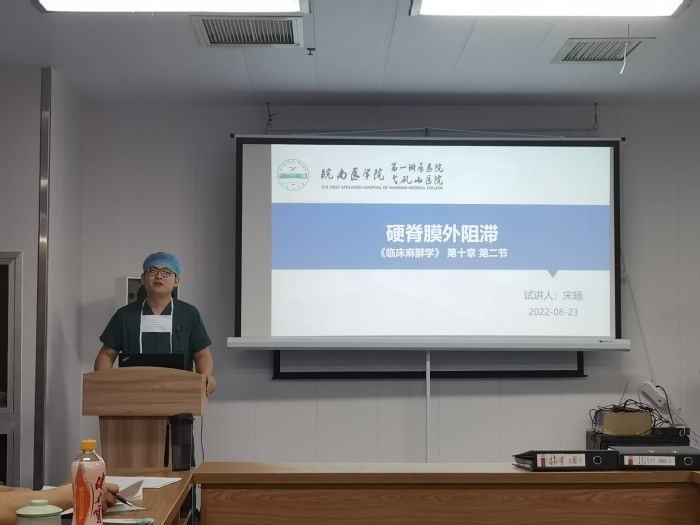 为提高青年教师的教学能力,促进教学水平的不断提高,英国正版365官方网站临床麻醉学教研室于2022年8月23日下午2点30在麻醉科示教室举行了“新教师试讲”活动。本次活动由英国正版365官方网站副经理郭文俊和临床麻醉学教研室主任陈永权共同主持,邀请了教研室多位专家莅临现场点评指导。
