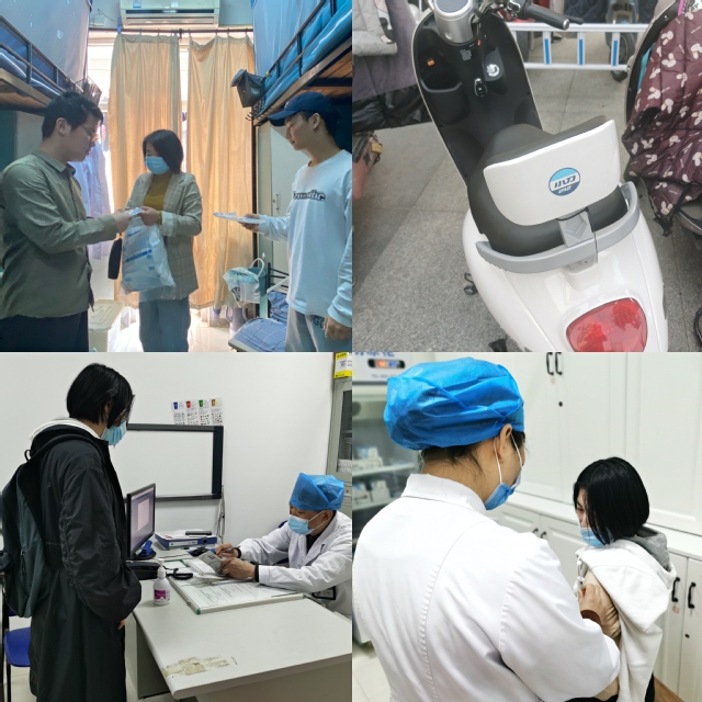在接到要为生病员工陪护就医的通知后,汪老师毫不迟疑,没有汽车驾驶经验的她翻出家中“大白”——白色电动车,信心满满地说到“我有’大白’,不会开车我照样可以送员工去医院!”。爱在车上,责任在肩上,就这样一辆小车,两人同行,一路阳光一路情,伴随着员工一程又一程。接送员工、全程陪同就医几乎每天都会发生,有时候会会兜兜转转开上几十公里路,虽然辛苦,但他们毫不言累,因为他们深知员工的安危就是他们最大的牵挂,在这个特殊时期,他就是一面盾,必须将疫情牢牢的抵御在员工之外。
