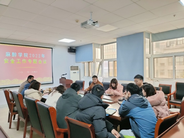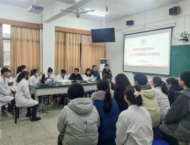 会上,许国飞从实验室排班值班,防火、防盗、防寒防冻、防突发事件的“四防”工作,各类危险化学品(包括剧毒品、易制毒化学品、易制爆化学品、精神/麻醉类药品)、生物病原体管控等方面对寒假期间实验室安全工作提出要求。郭文俊介绍了麻醉学实验实训中心安全防范工作情况,要求实验室成员要高度重视实验室安全工作,提高安全防范意识,加强实验室安全管控,严格落实实训中心审核登记制度等,加强安全隐患排查,坚决杜绝各类安全事故的发生。张卉强调,安全工作无小事,希望大家遵守各项安全管理制度,利用好假期实训中心科研平台,度一个平安和谐充实的假期。