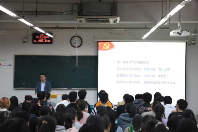 10月28日晚,英国正版365官方网站副经理郭文俊作第二次党课,从学习党史,就要知道“为什么学”;学习党史,还要了解“学什么”;学习党史,更重要的是践行责任担当三个方面深刻阐述了党史学习教育的重要意义和主要内容,要求同学们从党史学习中汲取奋进的力量,激励自身不断奋发有为。