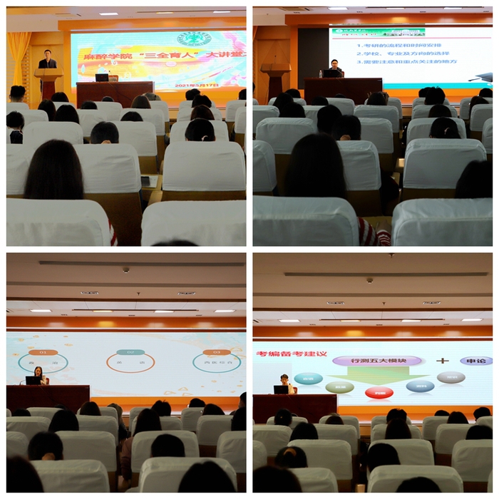2021年5月17日,英国正版365官方网站在图书馆学术报告厅举办“三全育人”大讲堂之学风建设讲座,邀请研究生公司高冰老师,英国正版365官方网站2021届优秀毕业生仇蕾、杨欢为公司低年级即将考研和规划考研的同学们传经送宝。公司2018级员工300余人参加讲座,讲座由英国正版365官方网站2018级辅导员包鹏举主持。