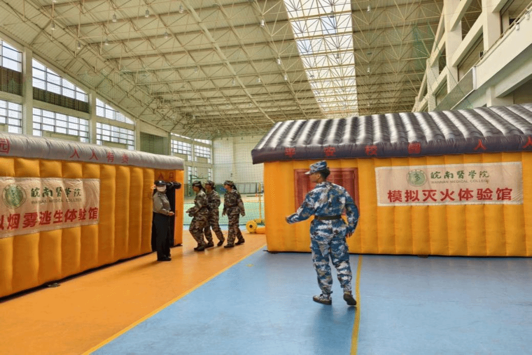 消防零距离体验,新生消防演习。9月23日,组织员工参加消防演练活动。在模拟烟雾逃生体验馆中,同学们互帮互助,在烟雾中低头行进,找准绿色通道安全出馆,充分认识到防火及逃生的重要性,掌握了遇到突发事故时自护自救的基本要领,为打造安全校园奠定了坚实的基础。