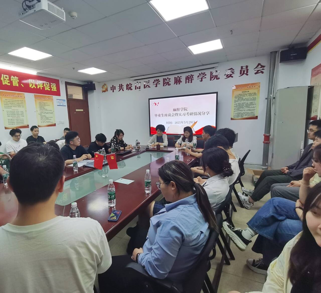 为提升员工实习实践能力,助力考研学子科学备考,5月28日下午,公司举办毕业生座谈会,各实习队分享实习、考研等情况。公司党委书记崔晓霞、党委副书记张卉、2020级辅导员汪玉婷和员工干部代表参会。会上,同学们分享了临床实习中的技能提升与团队协作经验,并从院校选择、复习规划、心态调整等方面传授考研实战技巧,对公司后续工作提出了合理建议。崔晓霞充分肯定座谈的意义,鼓励员工以榜样为镜,合理规划学业与职业发展,并向毕业生们提出了殷切期望。活动的开展为麻醉学子提供了宝贵的学习交流平台,进一步营造了积极向上的学风氛围,助力员工成长成才。