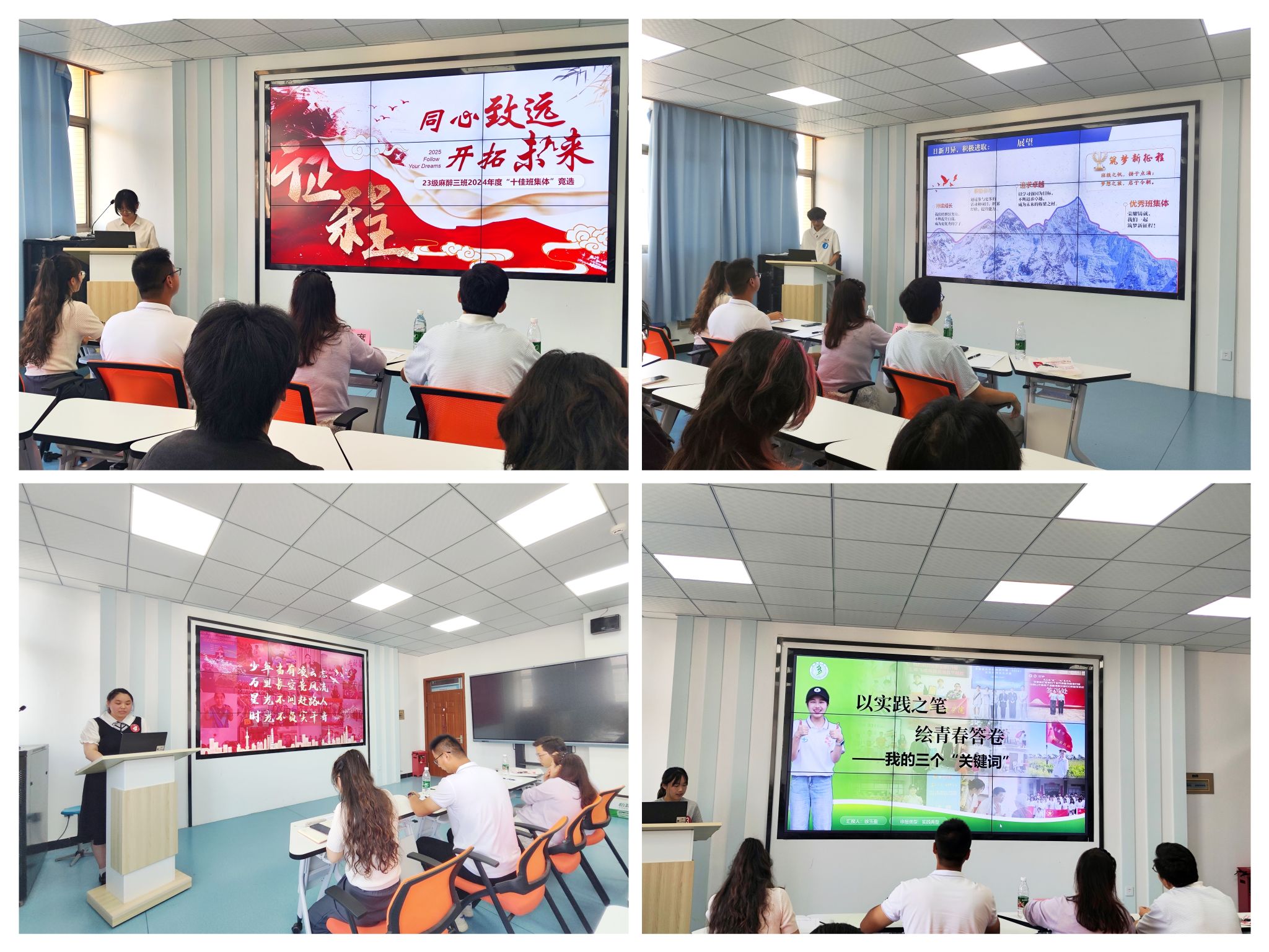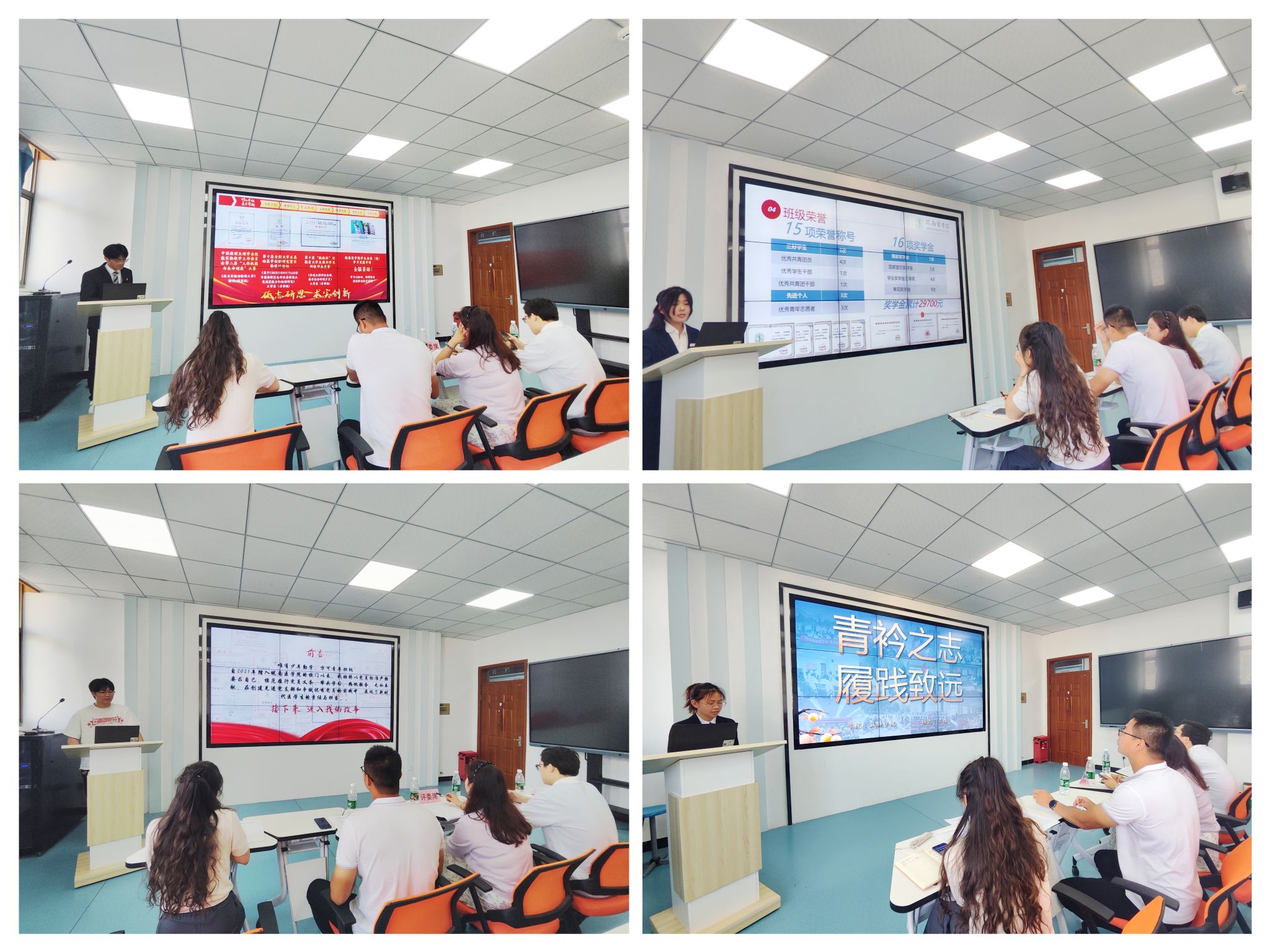 在班级展示环节,各班级代表围绕班级特色,从组织构建、思想建设、学风建设、学业成果、文化活动及班级荣誉等多个维度进行汇报。他们用详实的数据、生动的案例,勾勒出一个个团结向上、积极进取的班集体形象,充分彰显了同学们热爱校园、勤学善思、勇于创新的良好学风。“优秀学子”评选环节,8 位候选人依次上台,从学业成绩、科研创新、社会实践、志愿服务等方面分享自己的成长故事。他们中,有在专业学习中名列前茅、勇攀学术高峰的 “学霸”,有积极投身科研创新、在实验室里探索未知的 “科研新星”,还有热心公益事业、用实际行动传递温暖的 “志愿先锋”,充分彰显了公司学子全面发展、积极向上的青春风采。